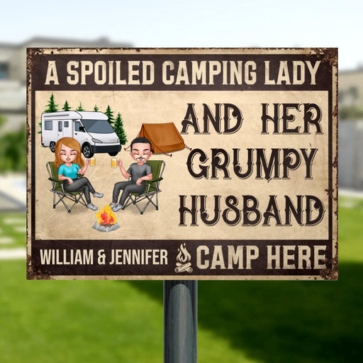 View full detailsPersonalized Camping Couple Metal Sign - Best Gift For Camping Lover/Couple - A Spoiled Camping Lady And Her Grumpy Husband Camp Here