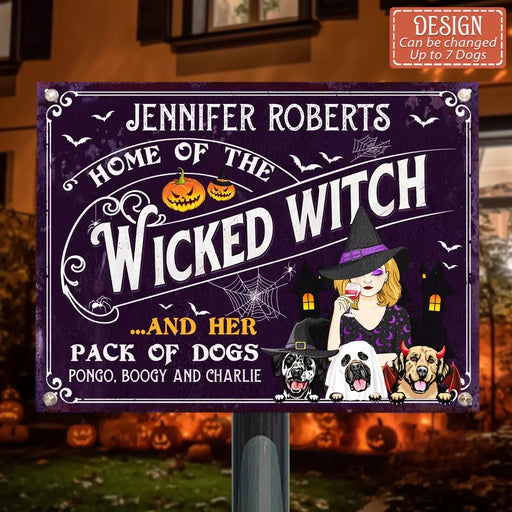 View full detailsPersonalized Witch Dog Metal Sign - Halloween Gift Idea For Witch/Dog Lovers With Up to 3 Dogs - Home Of The Wicked Witch And Her Pack Of Dogs