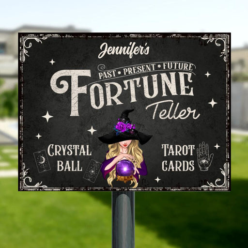 Personalized Witch Horizontal Metal Sign - Gift Idea For Halloween - Fortune Teller Crystal Ball Tarot Cards