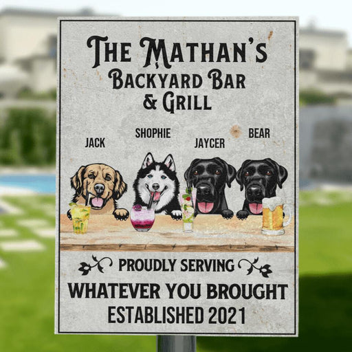 View full detailsPersonalized Dog Metal Sign - Family Name with up to 4 Dogs - Backyard Bar & Grill - 856IAJ