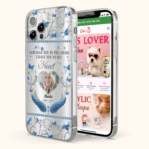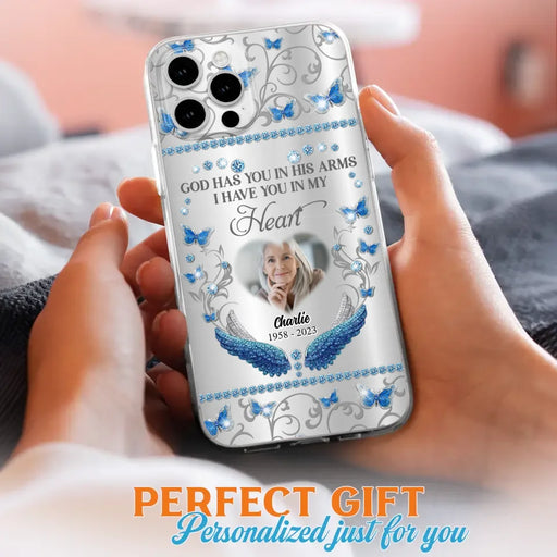 View full detailsCustom Personalized Memorial Photo Phone Case - Memorial Gift Idea for Mother's Day/Father's Day - God Has You In His Arms I Have You In My Heart - Cases For iPhone/Samsung