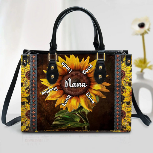 Personalized Grandma Sunflower Leather Handbag With Long Straps - Perfect Mother's Day Gift For Mom/Grandma