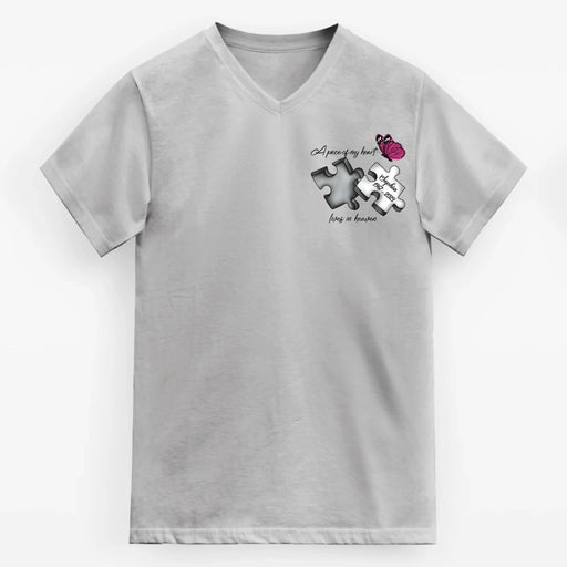View full detailsPersonalized Memorial V-Neck T-Shirt - Memorial Gift Idea for Mother's Day/Father's Day - A Piece Of My Heart Lives In Heaven