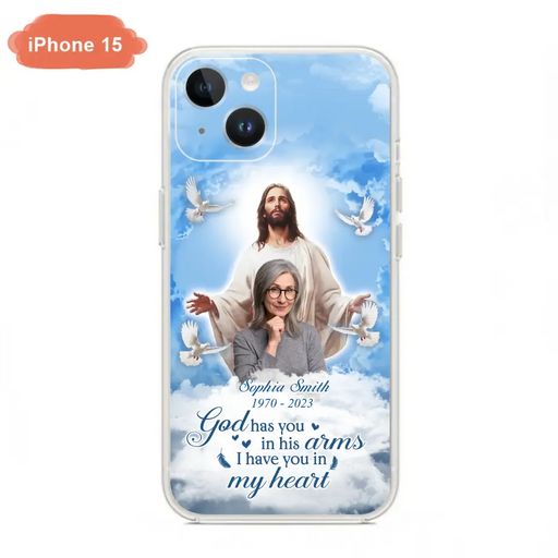 View full detailsCustom Personalized Memorial Photo Phone Case - Memorial Gift Idea for Mother's Day/Father's Day - God Has You In His Arms I Have You In My Heart - Case for iPhone/Samsung