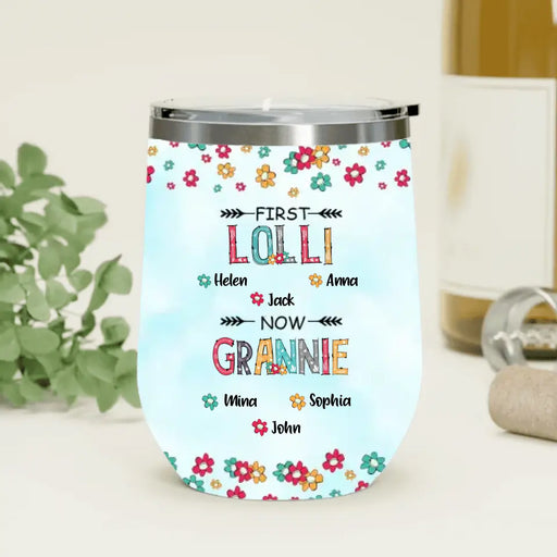 View full detailsPersonalized Grandma Wine Tumbler - Up to 4 Kids And 8 Grandkids - Mother's Day Gift Idea for Grandma - First Mom Now Nana Kid And Grandkids Flower Pattern