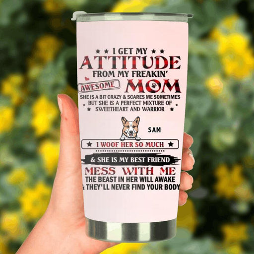 View full detailsPersonalized Dog Mom Tumbler - Up to 5 Dogs - Mother's Day Gift Idea For Dog Lovers - I Get My Attitude From My Freakin' Awesome Mom