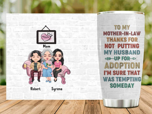 Personalized Mother Tumbler - Mom With Up to 2 Children - Gift Idea For Mother's Day - To My Mother-In-Law Thank For Not Putting My Husband Up For Adoption
