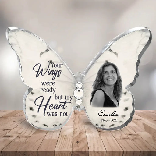 View full detailsPersonalized Memorial Photo Butterfly Acrylic Plaque - Memorial Gift Idea For Family Member/Mother's Day - Your Wings Were Ready But My Heart Was Not