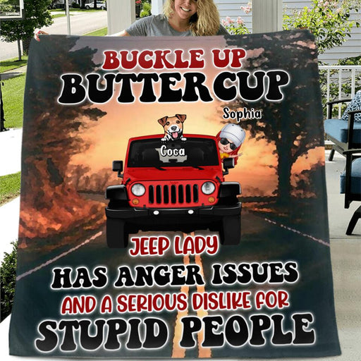 View full detailsPersonalized Off-road Lady Quilt/Fleece Throw Blanket/Pillow Cover - Up to 5 Dogs - Gift Idea For Dog/Off-road Lover - Buckle Up Buttercup