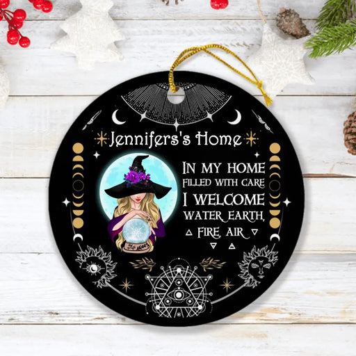 View full detailsCustom Personalized Witch Home Circle Ornament - Gift Idea For Halloween - Jennifer's Home, In My Home Filled With Care I Welcome Water, Earth, Fire, Air