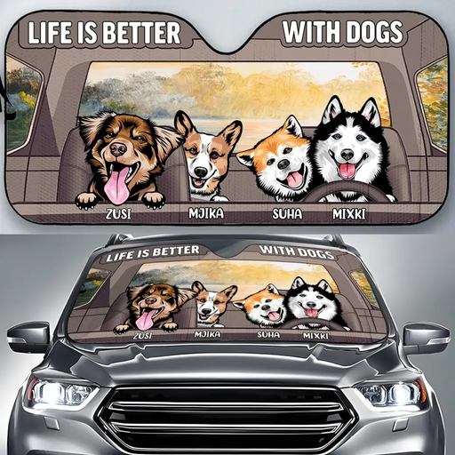 View full detailsPersonalized Dog Car Sunshade - Up to 4 Dogs - Gift Idea For Dog Lover - Life Is Better With Dogs
