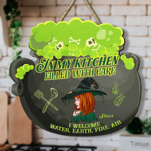 View full detailsPersonalized Witch Wooden Sign - Halloween Gift Idea For Witch/Pagan Decor - In My Kitchen Filled With Care I Welcome Water, Earth, Fire, Air