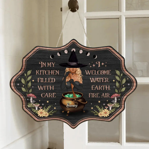 View full detailsCustom Personalized Witch Wooden Sign - In My Kitchen Filled With Care I Welcome Water Earth Fire Air - Halloween Gift Idea For Friends/Sisters/Wiccan Decor/Pagan Decor