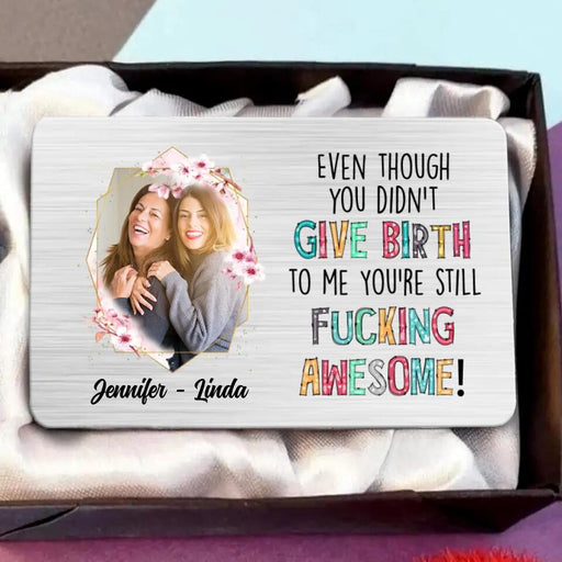 View full detailsCustom Personalized Mother Photo Aluminum Wallet Card - Mother's Day Gift for Mother-in-law/Bonus Mom - Even Though You Didn't Give Birth To Me You're Still Fucking Awesome