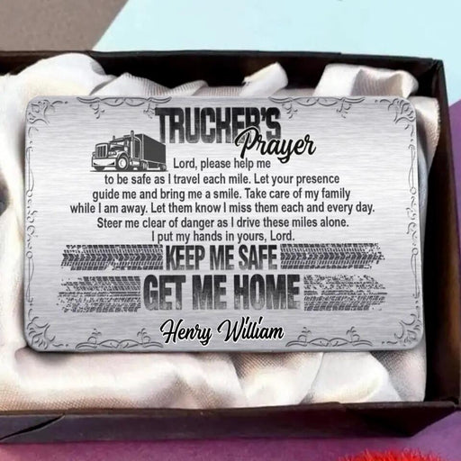 View full detailsPersonalized Trucker's Prayer Aluminum Wallet Card - Gift Idea For Father's Day/Truckers - Lord Please Help Me To Be Safe As I Travel Each Mile