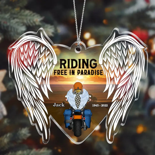 Personalized Memorial Acrylic Ornament - Memorial Gift Idea For Motorcycle Lovers - Riding Free In Paradise