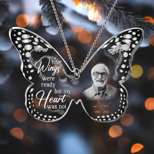 View full detailsPersonalized Memorial Photo Butterfly Acrylic Ornament - Memorial Gift Idea For Christmas - Your Wings Were Ready But My Heart Was Not
