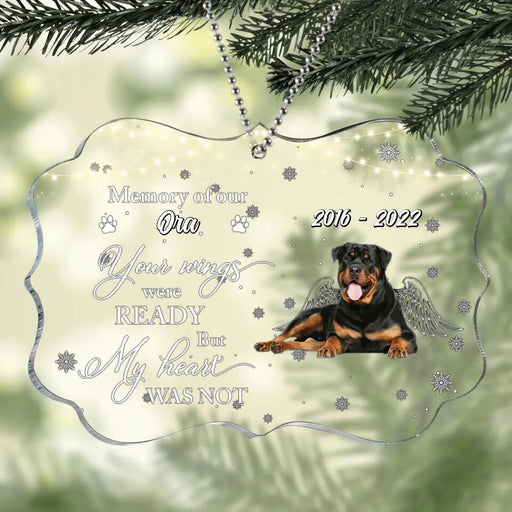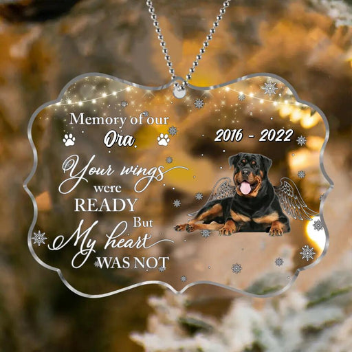 View full detailsCustom Personalized Memorial Rectangle Acrylic Ornament - Upload Dog Photo - Gift Idea For Dog Owner - Your Wings Were Ready But My Heart Was Not
