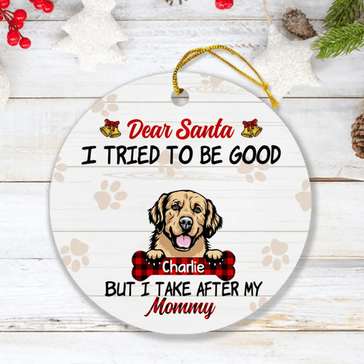 View full detailsPersonalized Dog Mom/Dad Ornament - Up to 4 Dogs - Best Gift For Dog Lover - Dear Santa I Tried To Be Good But I Take After My Mommy/Daddy - QSFLPL