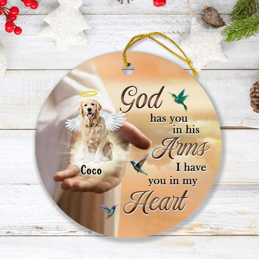 View full detailsCustom Personalized Memorial Dog Ornament - Memorial Gift Idea For Dog Lovers/Christmas - God Has You In His Arms I Have You In My Heart
