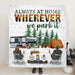 Personalized Camping Pillow Cover/Fleece Throw Blanket/Quilt - Couple/Parents & Up To 3 Kids, 4 Pets - Gift Idea From Camping Lovers - Always At Home Wherever We Park It