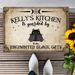 Personalized Cat Doormat - Halloween Gift Idea For Cat Lover - Up to 7 Cats - Witch's Kitchen Is Guarded By Enchanted Black Cats