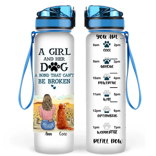 Personalized Dog Mom Tracker Bottle - Up to 4 Dogs - Gift Idea For Dog Lovers - A Girl And Her Dog A Bond That Can't Be Broken
