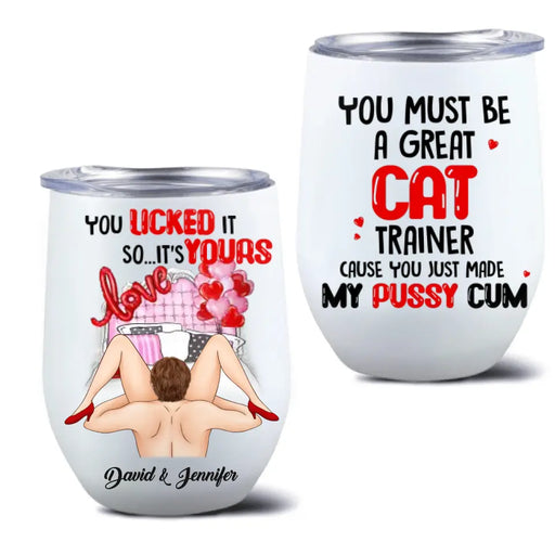 View full detailsPersonalized Couple Wine Tumbler - Gift Idea For Him/Her - You Must Be A Great Cat Trainer Cause You Just Made My Pussy Cum