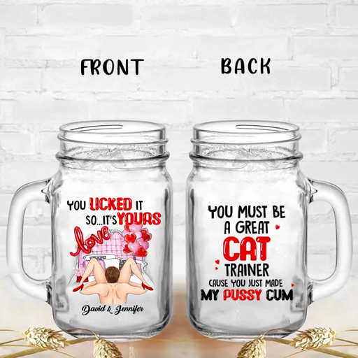 View full detailsPersonalized Couple Mason Jug - Gift Idea For Him/Her - You Must Be A Great Cat Trainer Cause You Just Made My Pussy Cum