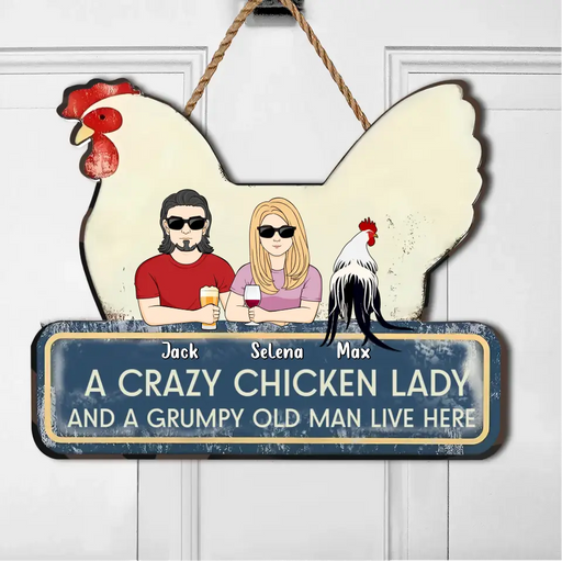 View full detailsPersonalized Crazy Chicken Lady Wooden Sign - Couple With Up to 6 Chickens - Gift Idea For Couple/Chicken Lover - A Crazy Chicken Lady And A Grumpy Old Man Live Here