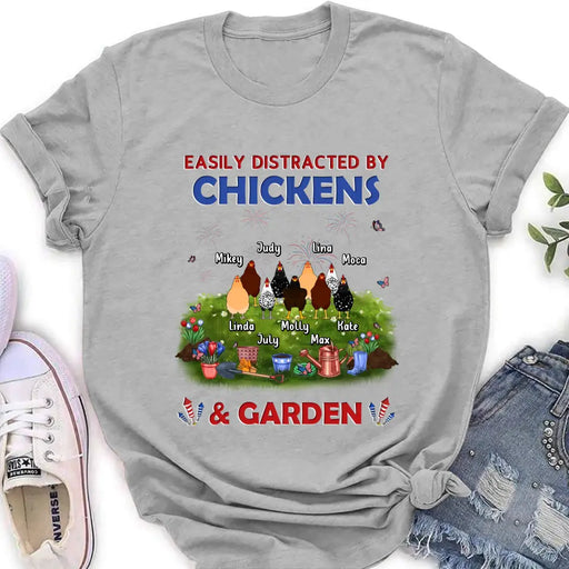 View full detailsPersonalized Chickens Shirt/Hoodie - Up to 9 Chickens - Gift Idea For Independence Day/Chicken Lovers - Easily Distracted By Chickens & Garden