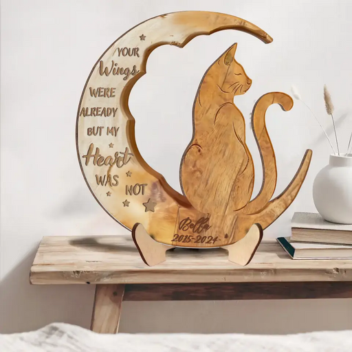 View full detailsPersonalized Cat Moon Wooden Art - Memorial Gift Idea - Your Wings Were Already But My Heart Was Not