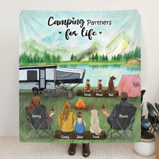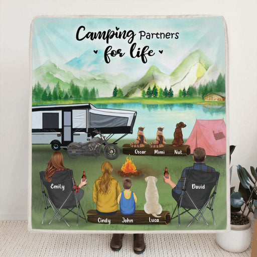View full detailsPersonalized Camping Blanket Gift For Whole Family, Camping Lovers - Parents with 2 Kids and 4 Pets - Camping Partners For Life - 3KFOG2