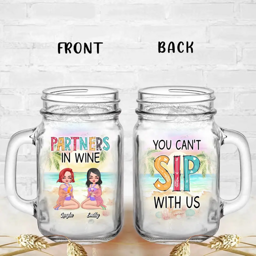Personalized Best Friends Mason Jug - Gift Idea For Besties/Friends/Summer Vacation - Up to 4 Girls - You Can't Sip With Us