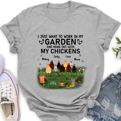 View full detailsPersonalized Shirt/Sleeve/Hoodie/Sweatshirt - Gift For Chicken Lovers - I just want to work in my Garden and hang out with my Chickens - Up to 9 Chickens