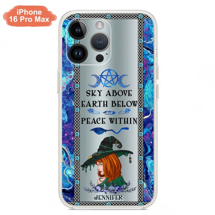 Custom Personalized Witch Phone Case - Gift Idea For Witch Lovers - Sky Above Earth Below Peace Within - Cases For iPhone & Samsung