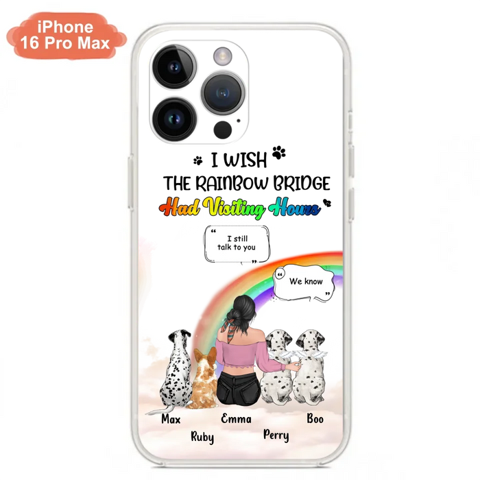 Personalized Pet Mom Phone Case - Up to 4 Pets - Memorial Gift Idea for Dog/Cat Lovers - I Wish The Rainbow Bridge Had Visiting Hours - Case for iPhone/Samsung