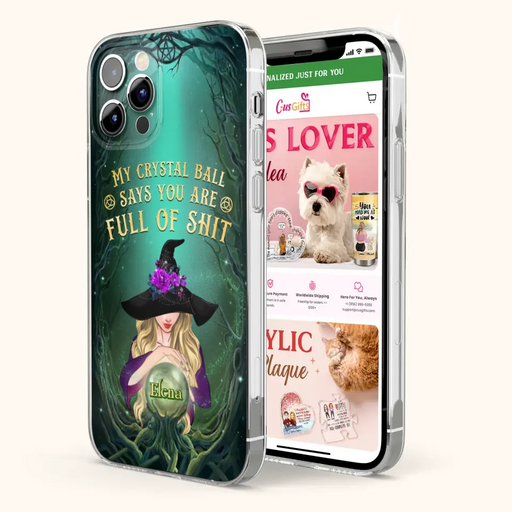 Custom Personalized Witch Phone Case - Gift Idea For Witch Lovers - My Crystal Ball Says You Are Full Of Shit