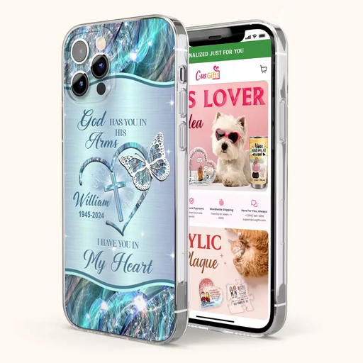 View full detailsCustom Personalized Memorial Phone Case - Memorial Gift For Family Member - God Has You In His Arms I Have You In My Heart - Case For iPhone/ Samsung