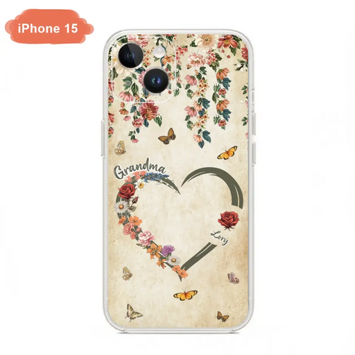 Custom Personalized Floral Heart Grandma Mom Vintage Birth Month Flower Phone Case - Up to 10 Kids - Mother's Day Gift Idea for Mom/Grandma - Case For iPhone/ Samsung