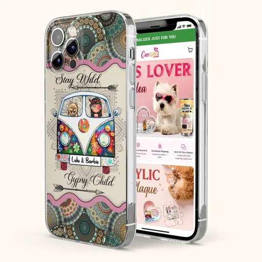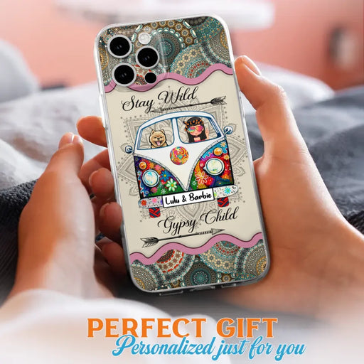 View full detailsPersonalized Hippie Phone Case - Girl with up to 3 Pets - Stay wild gypsy child