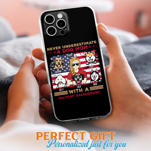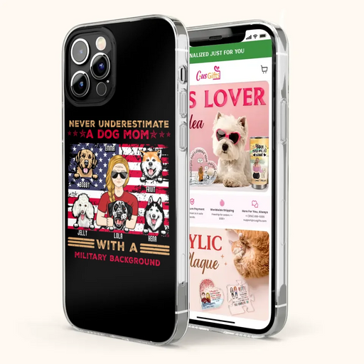 View full detailsCustom Personalized Dog Mom Phone Case - Upto 5 Dogs - Gift Idea For Mother's Day/ Dog Lover - Never Underestimate A Dog Mom With A Military Background - Case For iPhone And Samsung
