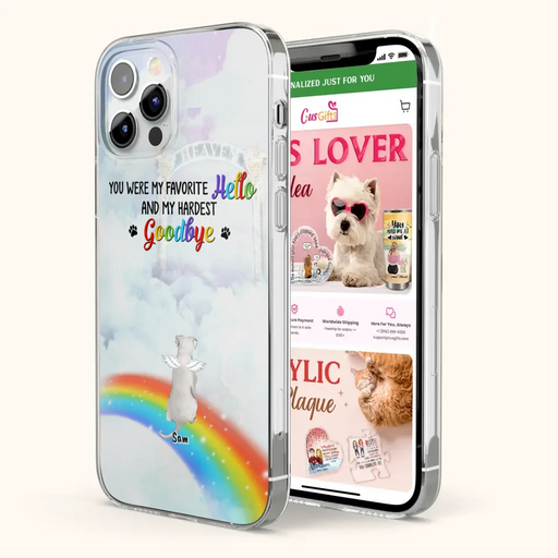 View full detailsCustom Personalized Memorial Pets At Rainbow Bridge Phone Case - Upto 5 Pets - Memorial Gift For Dog Lovers/Cat Lovers - You Were My Favorite Hello And My Hardest Goodbye - For iPhone And Samsung Phone Case