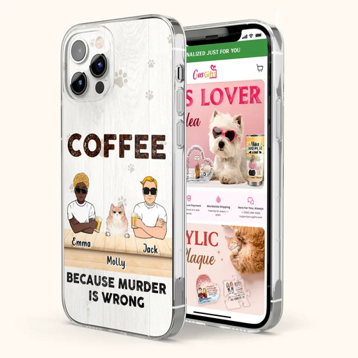 View full detailsCustom Personalized Cat Phone Case - Gift Idea For Cat Lovers - Up to 6 Cats - Coffee Because Murder Is Wrong - Case For iPhone/Samsung