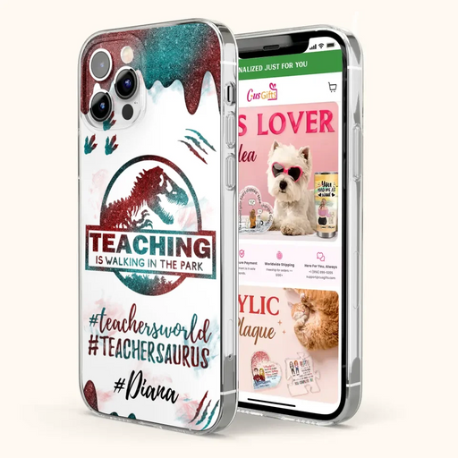 View full detailsCustom Personalized Teacher Dinosaur Phone Case - Best Gift For Teachers - Teaching Is Walking In The Park - For iPhone And Samsung Phone Case - 5DGAH6