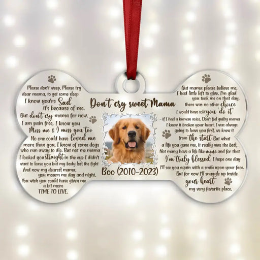 View full detailsCustom Personalized Pet Photo Acrylic Ornament - Christmas/Memorial Gift Idea for Dog/Cat Owners - Don't Cry Sweet Mama