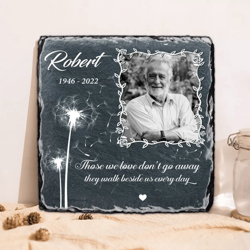 View full detailsCustom Personalized Memorial Square Slate Stone Plaque - Photo Slate Plaque - Memorial Gift - Those we love don't go away