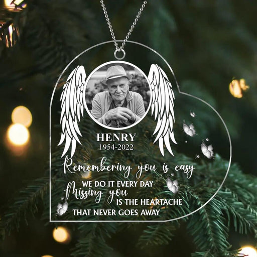View full detailsCustom Personalized Memorial Acrylic Ornament - Upload Photo - Memorial Gift For The Loss Of Loved Ones - Remembering You Is Easy We Do It Every day. Missing You Is The Heartache That Never Goes Away