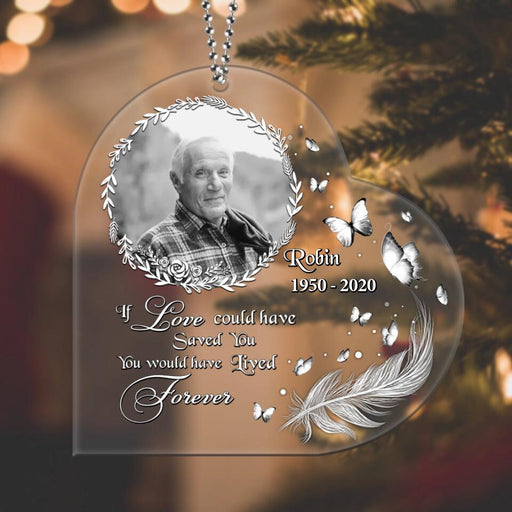 View full detailsCustom Personalized Memorial Photo Heart Acrylic Ornament - Memorial Gift Idea For Christmas - If Love Could Have Saved You You Would Have Lived Forever