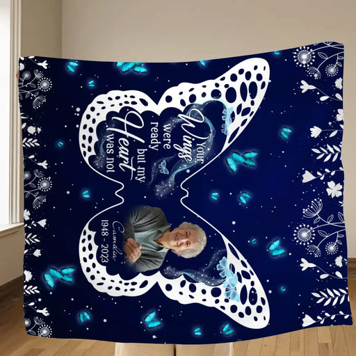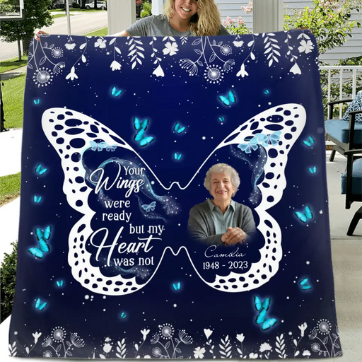 View full detailsPersonalized Memorial Fleece Throw Blanket & Quilt - Upload Photo - Memorial Gift Idea For Family Member - Your Wings Were Ready But My Heart Was Not